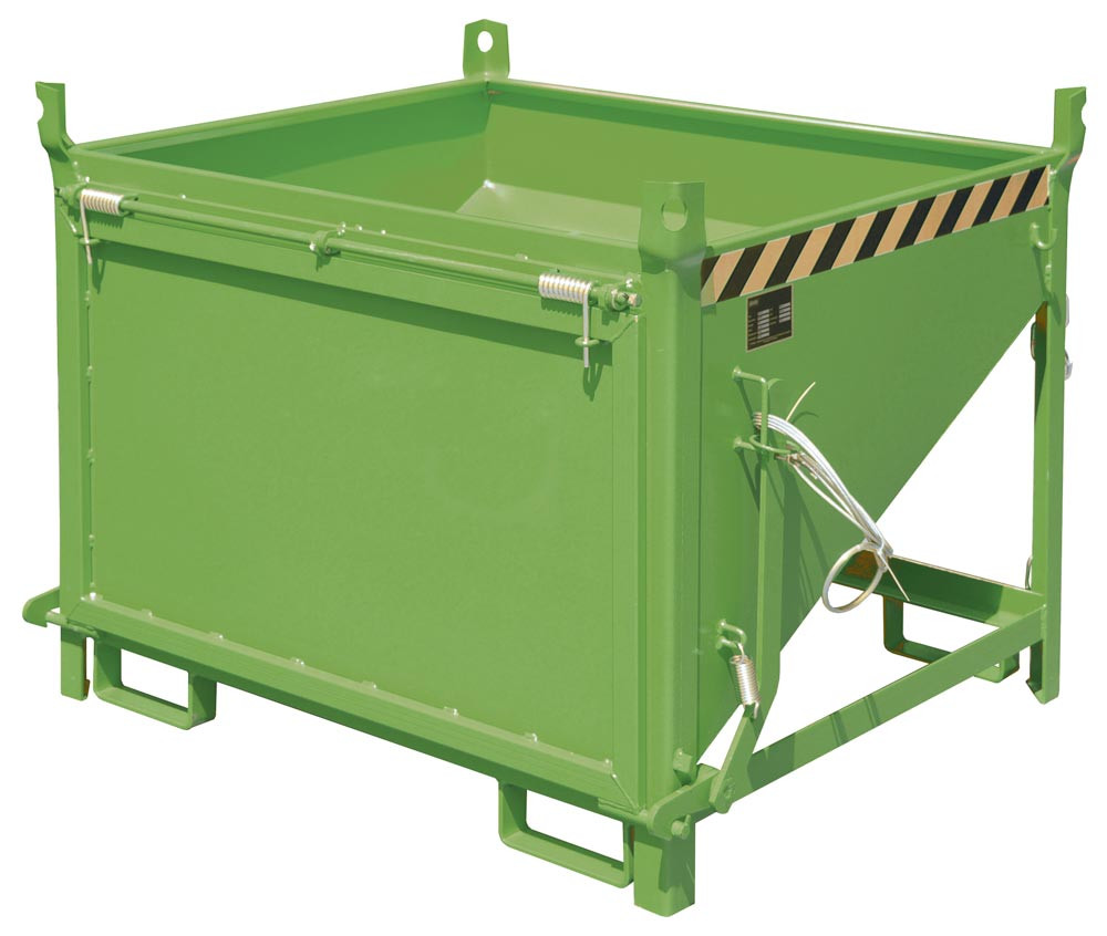 Silobehälter, LxBxH 1000x1200x935 mm, Vol. 0,5 cbm, Traglast 750 kg, stirnseitige Klappe, lackiert RAL 6011 resedagrün