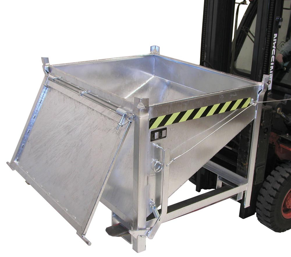 Silobehälter, LxBxH 1000x1200x935 mm, Vol. 0,5 cbm, Traglast 750 kg, stirnseitige Klappe, verzinkt