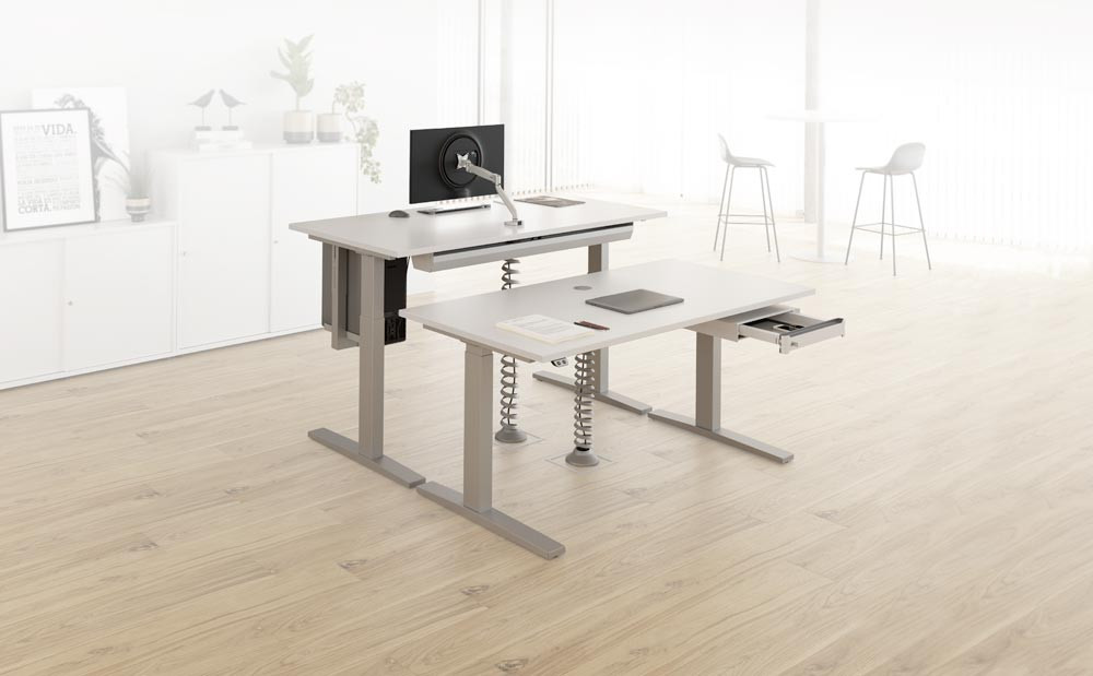 ∙ Höhenverstellung von 635 bis 1285 mm über 2 Motoren in den Gestellsäulen
