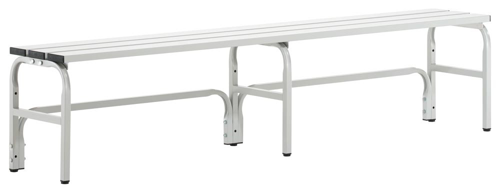Doppelseitige Garderobenbank, ohne Schuhrost, Edelstahl/Alu, TxH 700x450 mm, Länge 1015 mm, RAL 7035 E849101