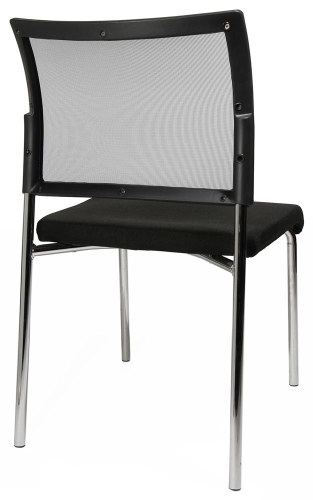 · Ergonomisch geformte Rückenlehne mit atmungsaktiver Netzbespannung und schwarzem Kunststoffrahmen · Bequem gepolsteter Muldensitz mit abgerundeter Vorderkante · Verchromtes Vierfußgestell aus Rundrohr Ø 22 mm · Kunststoff-Fußgleiter · Stapelbar bis zu 2 Stühlen · Armlehnen optional gegen Aufpreis lieferbar · VE 2 Stück