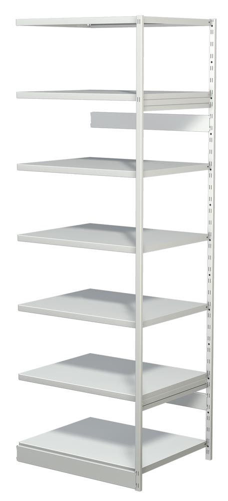 Steckregal ohne Rückwand, Anbaufeld, 7 Fachböden, 6 OH, BxTxH 750x300x2250 mm, lichtgrau E854413
