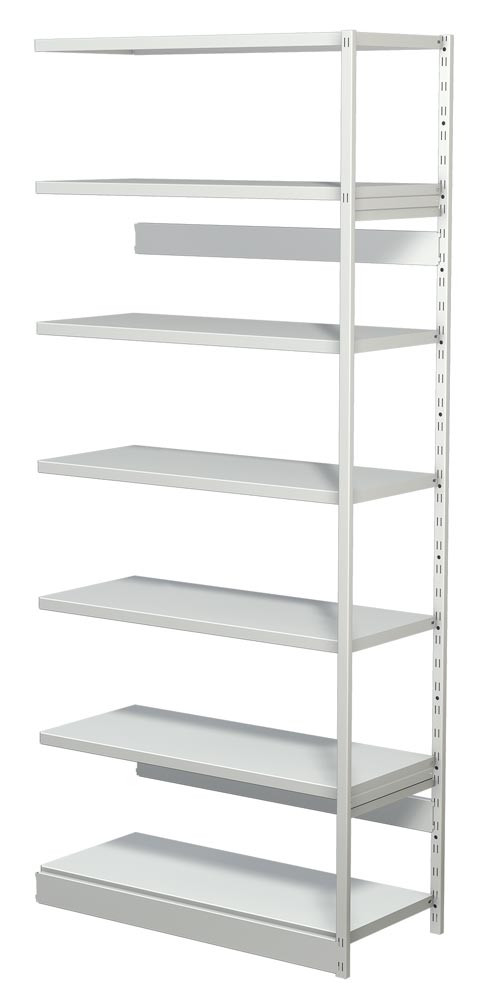 Steckregal ohne Rückwand, Anbaufeld, 7 Fachböden, 6 OH, BxTxH 960x300x2250 mm, lichtgrau E854415