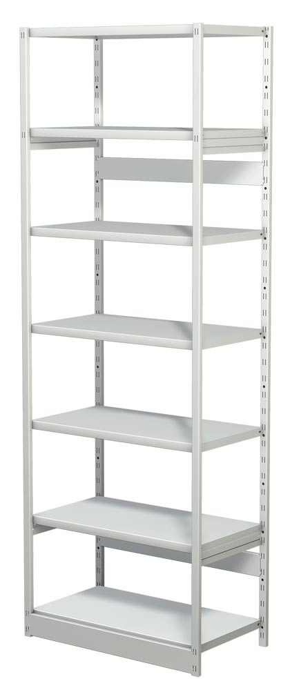 Steckregal ohne Rückwand, Grundfeld, 7 Fachböden, 6 OH, BxTxH 750x300x2250 mm, lichtgrau E854412
