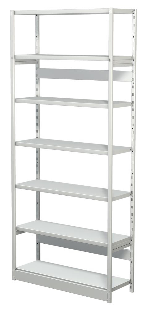 Steckregal ohne Rückwand, Grundfeld, 7 Fachböden, 6 OH, BxTxH 750x300x2250 mm, lichtgrau E854412