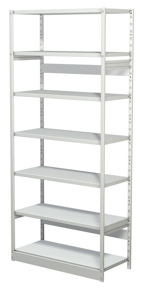Steckregal ohne Rückwand, Grundfeld, 7 Fachböden, 6 OH, BxTxH 750x300x2250 mm, lichtgrau E854412