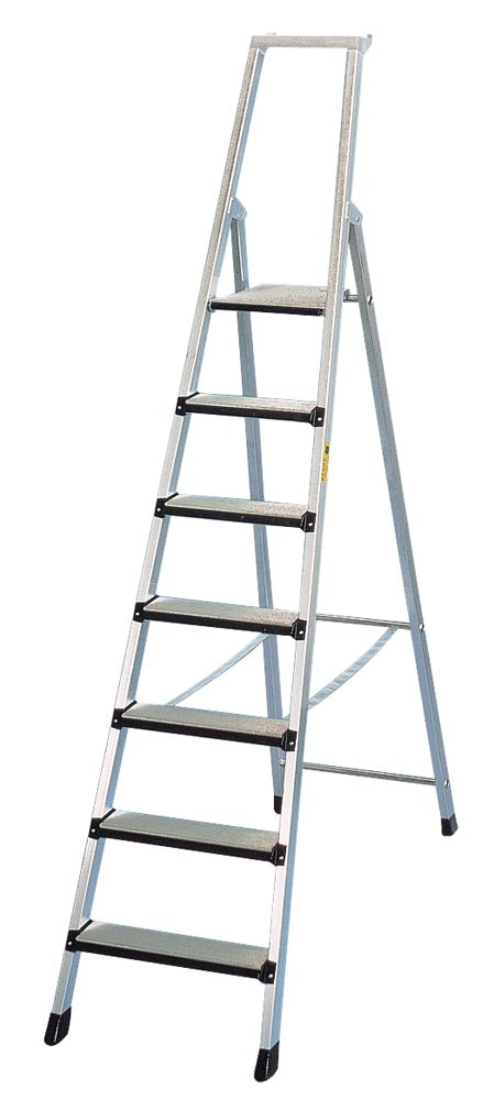 Stehleiter mit Sicherheitsbrücke, Stufenvorderkante gepolstert, Leiterlänge 2640 mm, 7 Stufen E865163