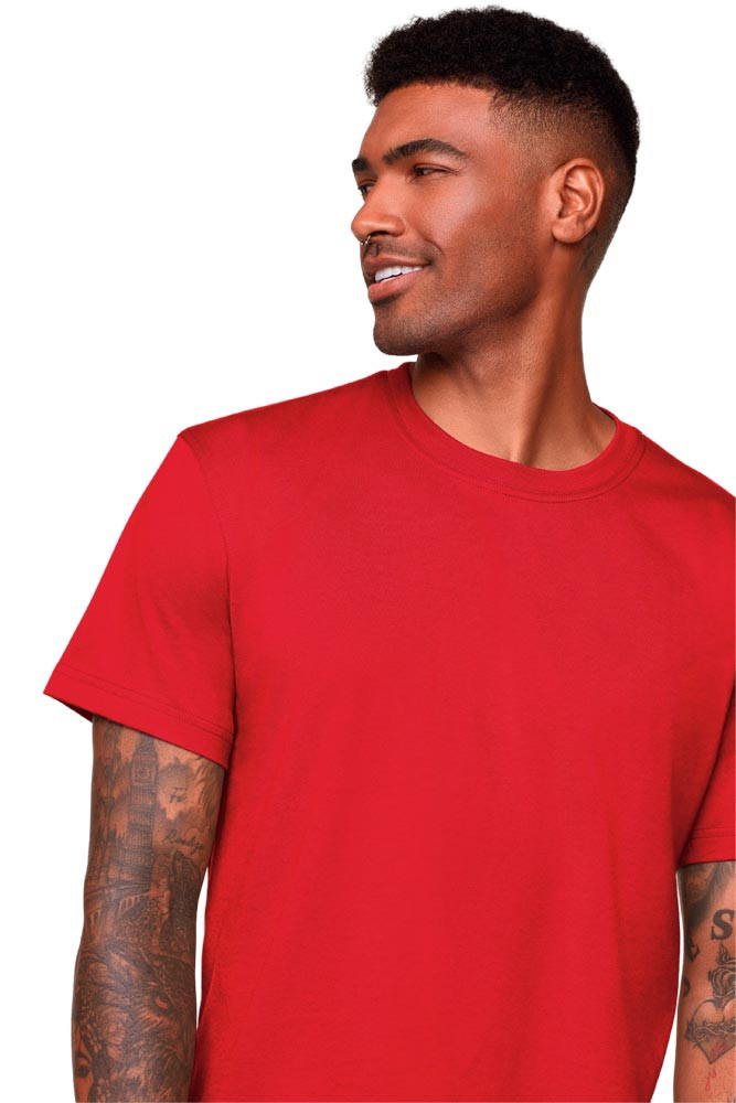 Single-Jersey aus 50% Baumwolle/50% Polyester, ca. 160 g/m2 ∙ T-Shirt mit 1x1 geripptem Halsbündchen und Doppelnaht an
