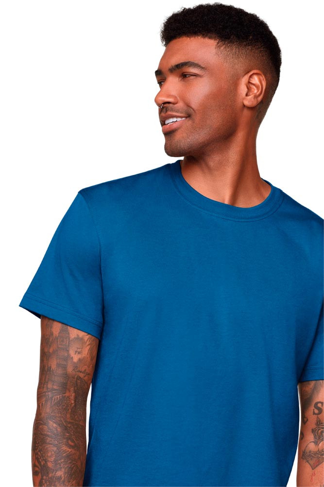 Single-Jersey aus 50% Baumwolle/50% Polyester, ca. 160 g/m2 ∙ T-Shirt mit 1x1 geripptem Halsbündchen und Doppelnaht an