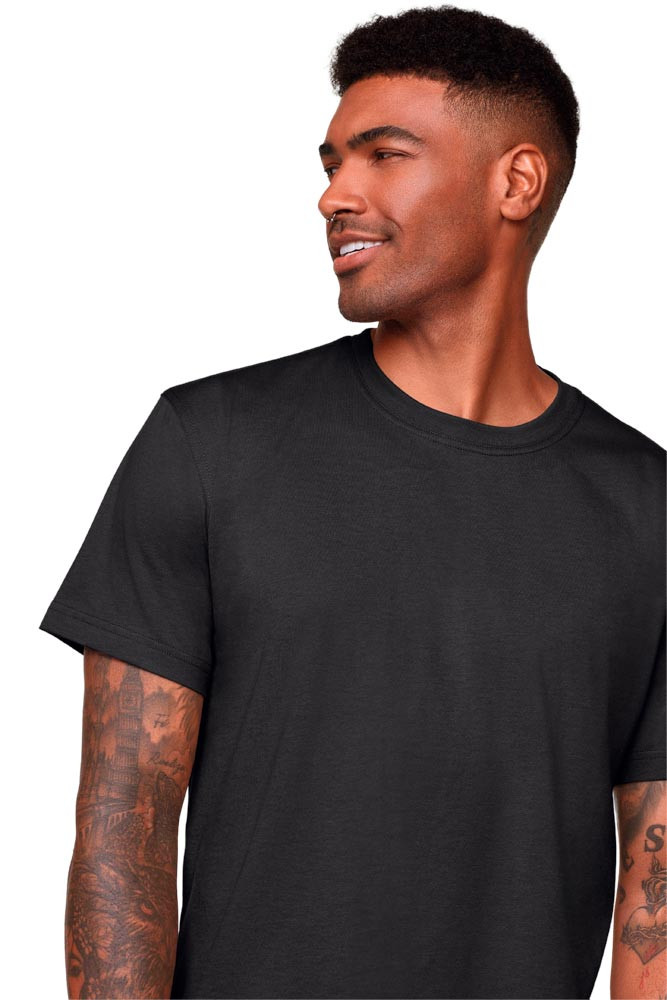 Single-Jersey aus 50% Baumwolle/50% Polyester, ca. 160 g/m2 ∙ T-Shirt mit 1x1 geripptem Halsbündchen und Doppelnaht an