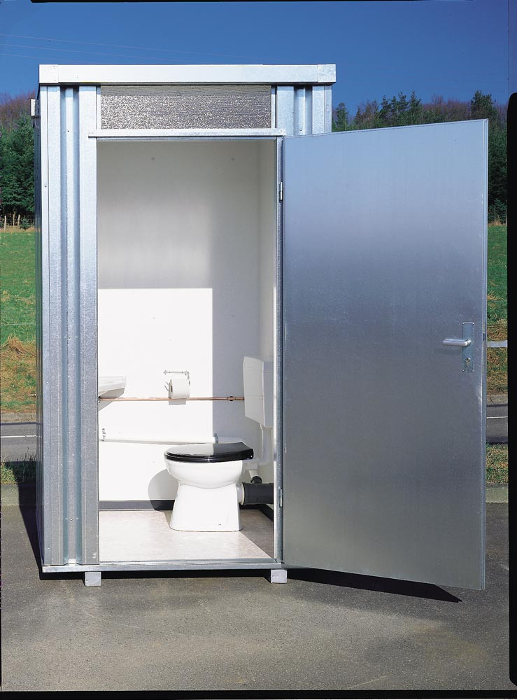 Toilettenbox, feuerverzinkt, inkl. Eckwaschbecken, Tiefspülklosett und 160 l Frischwassertank, BxTxH 1400x1250x2425 mm E829798