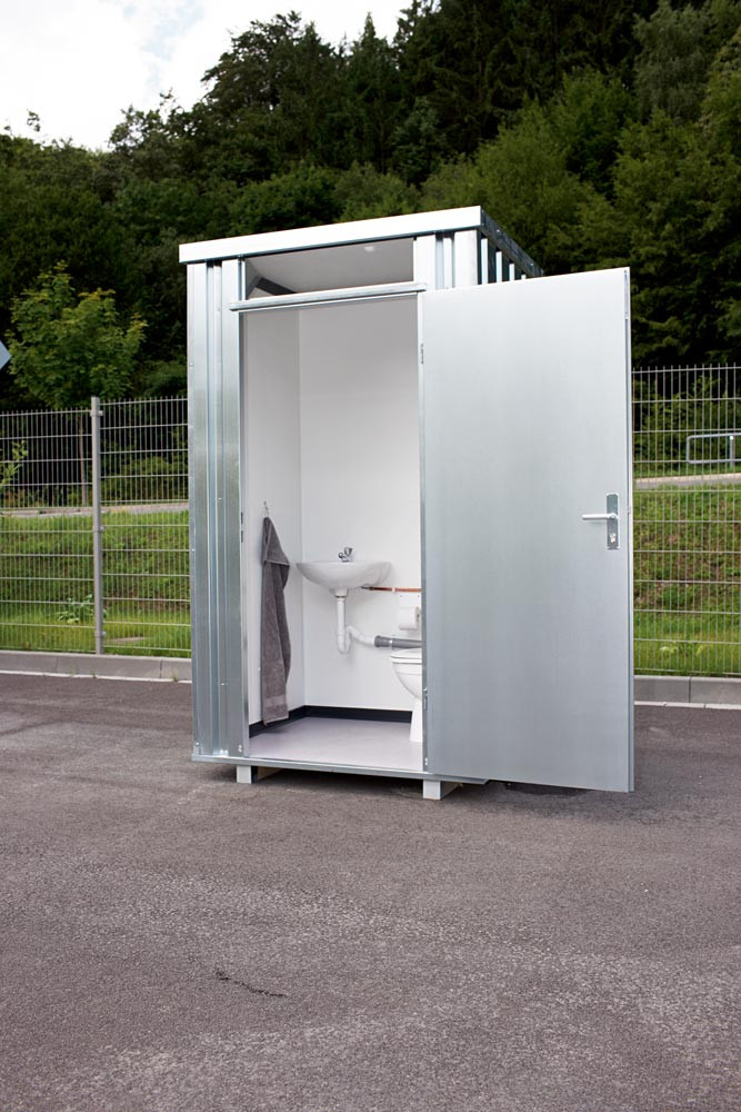 Toilettenbox, feuerverzinkt, inkl. Eckwaschbecken, Tiefspülklosett und 160 l Frischwassertank, BxTxH 1400x1250x2425 mm E829798