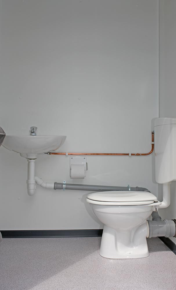 · Ausführung mit Waschbecken und Tiefspülklosett ∙ 3/4" Wasseranschluss und Abwasserstutzen NW 100 mm