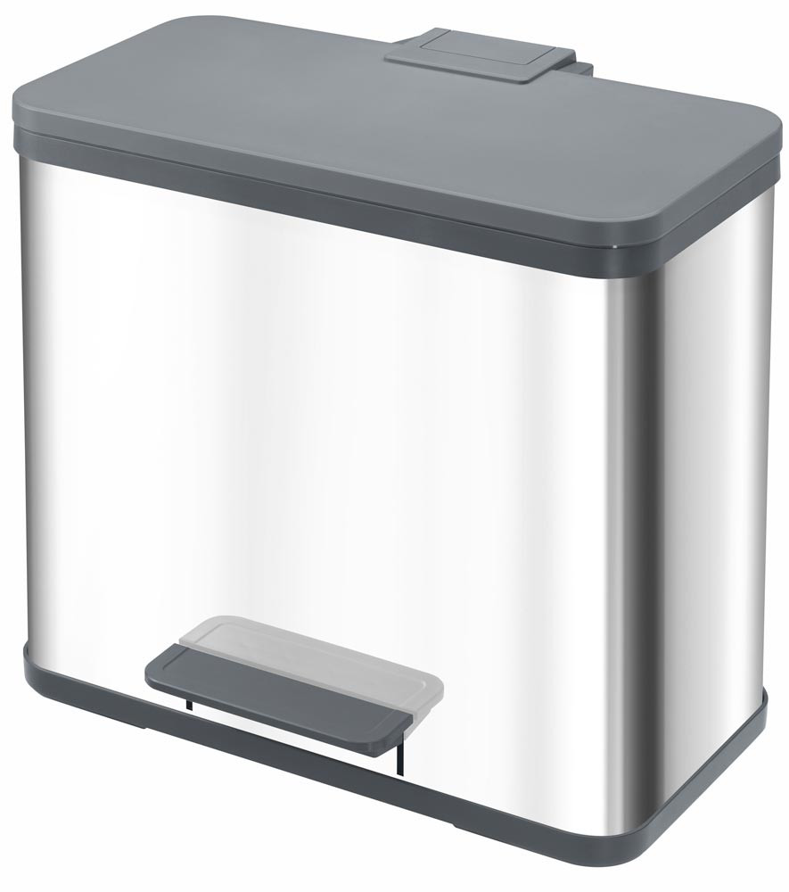 ∙ Rechteck-Gehäuse mit einzelnen Inneneimern zur Mülltrennung ∙ Stabil und standfest ∙ Deckel aus hochwertigem Kunststoff in schwarz mit Vertiefung zur Kennzeichnung der Abfallsortierung, inkl. Farbsticker zur Müllsorten-Kennzeichnung · Gedämpfter Deckel-Schließ-Mechanismus - Deckel schließt leise · Großer Öffnungswinkel zum leichten Befüllen · Ergonomischer Tragegriff im Deckelscharnier integriert · Ergonomisch breites Fußpedal · Innenliegende, hygienische Tretmechanik · Standfest durch breiten Bodenring