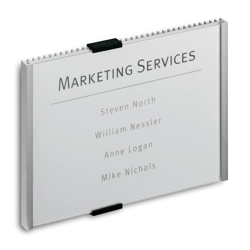 professionelles Türschild in attraktiven Design mit Rippenoptik · Abdeckung aus Acryl, obere Verschlusskappen verschiebbar