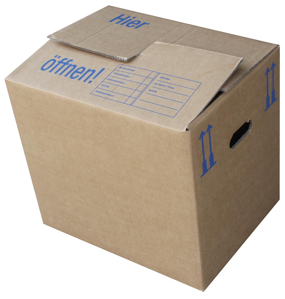 ∙ Durch den sicheren 3-fach Boden mit Steckverschluss besonders robust und stabil ∙ Optimal für den Umzug geeignet ∙ Mit Griffen zum "Einklappen", damit beim Tragen die Grifflöcher nicht sofort einreissen ∙ Deckelklappen ineinander steckbar, Beschriftungsfelder aufgedruckt ∙ FEFCO 1000