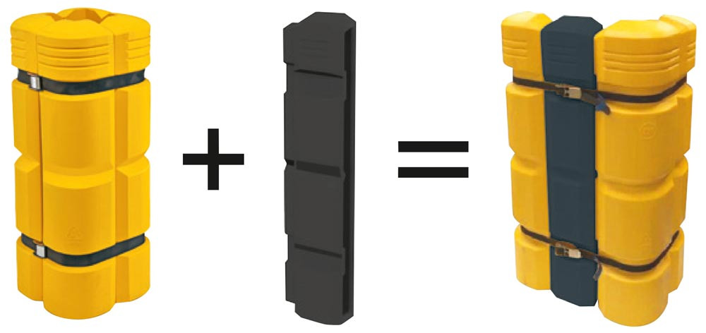 · Verlängerungselement zum Erweitern des Säulenschutzes um 200 mm, somit passend für Säulenmaße bis B x T 600 x 600 mm · Bei Verwendung des Erweiterungselements sind längere Spanngurte notwendig (je 4,0 m), diese sind als Zubehör erhältlich