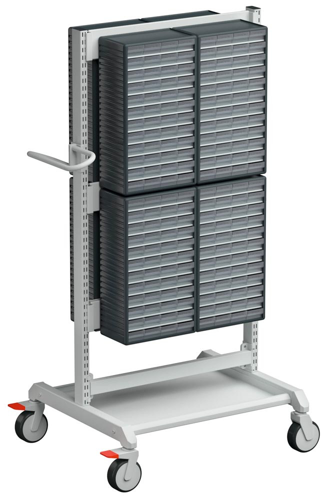 Wagen für Kleinteilemagazine, BxTxH 780x715x1600 mm, Traglast 150 kg, max. 8 Magazine, passend zu Kleinteilemagazinen BxTxH 310x180x550 mm E6043942