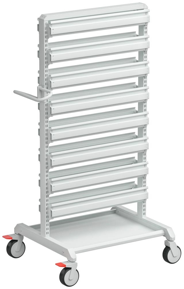Wagen für einzelne Sichtlagerkästen, BxTxH 780x715x1630 mm, Traglast 150 kg, mit 8 Schienen, für Sichtlagerkästen m. Höhe 73, 128, 153, 180 mm E6043943