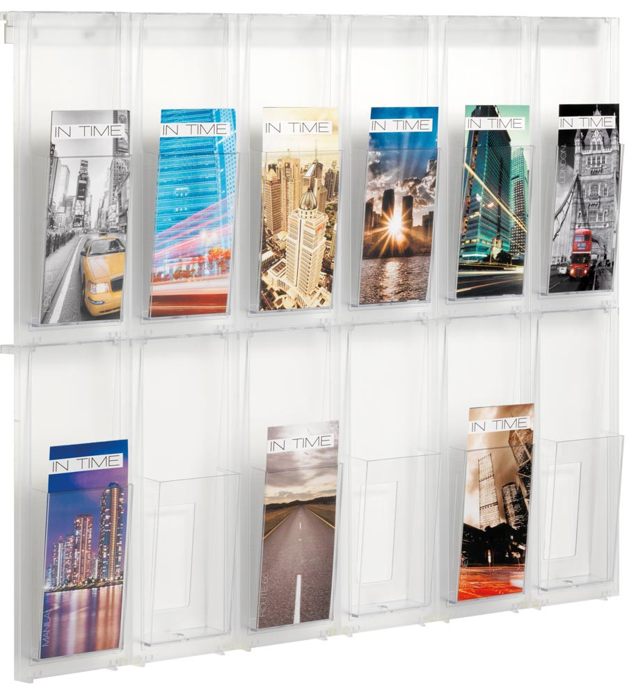 Wand-Display, 12x1/3 DIN A4, BxTxH 852x59x652 mm, glasklar, inkl. Montageschiene + Befestigungsmaterial