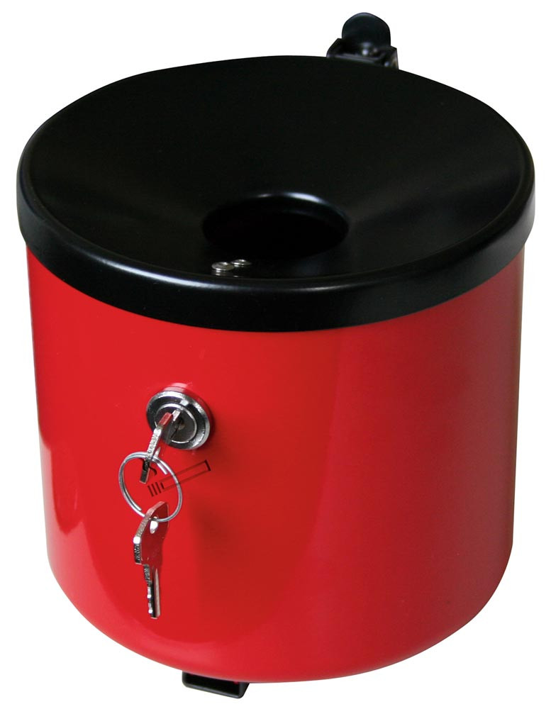 Wandascher, abschließbar, Volumen 2,4 Liter, DxH 150x145 mm, Stahlblech rot