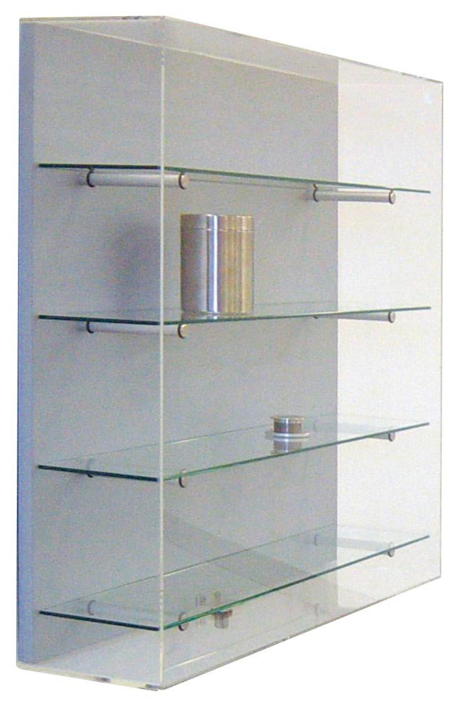 Wandvitrine, Ganzglas, Sichtböden oben/unten Dekor-Silber, 4 Dickglasböden, BxTxH 800x200x800 mm