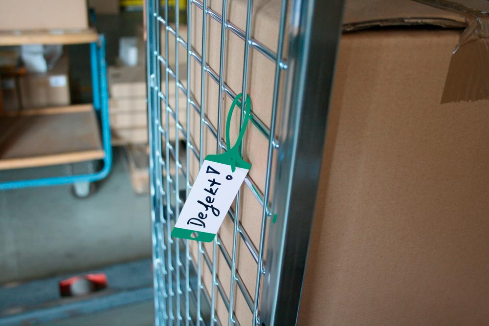 · Ausführliche Informationen oder Hinweise können direkt am Gegenstand fixiert werden · Ideal für den Wareneingang, Warenausgang, Lager oder Produktion · Aus wetterfester Polypropylen-Folie · Für den Innen- und Außeneinsatz geeignet · Vorlochung für eine schnelle Anbringung · Mit Kugelschreiber beschriftbar · Abmessung Fahne B x H 35 x 80 mm