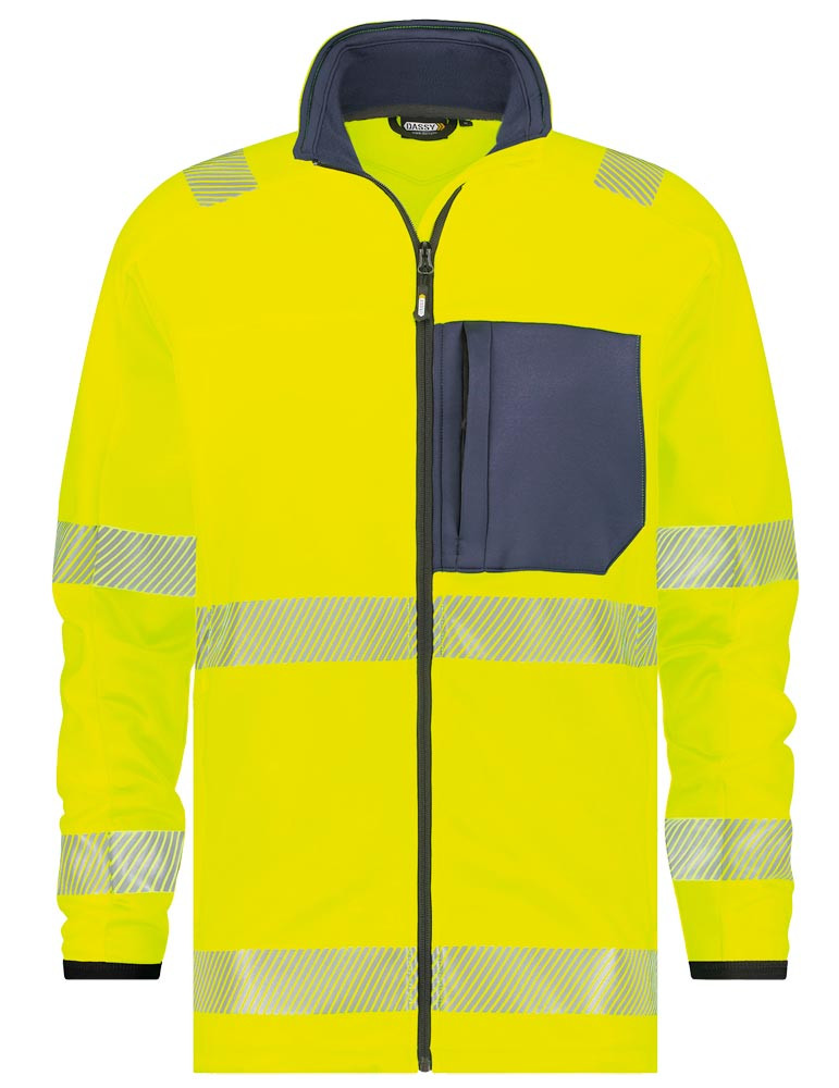 Nach EN ISO 20471: 2013+A1:2016, Klasse 2 ∙ Aus 94% Polyester/6% Elasthan, ca. 260g/m2 ∙ Schmale Passform ∙ Fleecematerial in fluoreszierenden Farben ∙ Für die Zwischensaison oder als warmer Pullover in den Wintermonaten ∙ Mit langem Reißverschluss ∙ Reißverschluss mit Kinnschutz ∙ Zwei Schubtaschen und eine Brustasche, jeweils mit Reißverschluss ∙ Segmentierte Reflexstreifen von 50 mm ∙ Stickerei in Kontrastfarbe ∙ Ideal zur Veredelung ∙ OEKO-TEX® Standard 100
