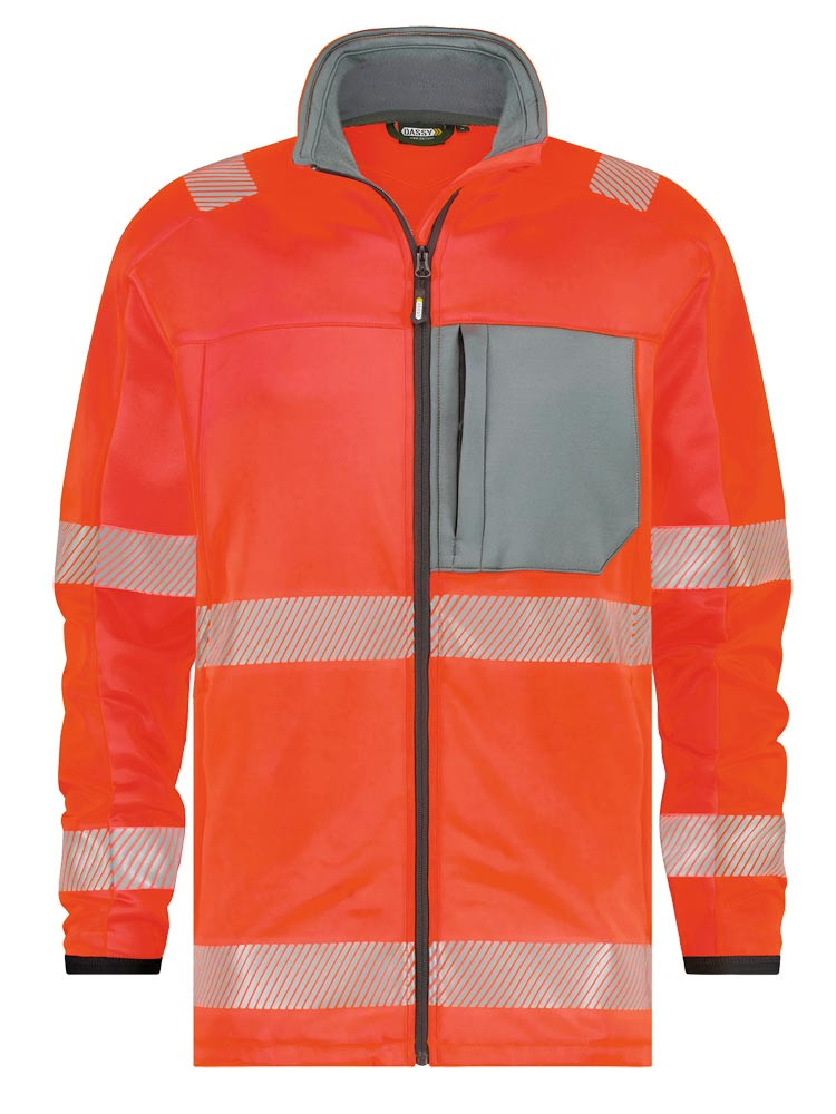 Nach EN ISO 20471: 2013+A1:2016, Klasse 2 ∙ Aus 94% Polyester/6% Elasthan, ca. 260g/m2 ∙ Schmale Passform ∙ Fleecematerial in fluoreszierenden Farben ∙ Für die Zwischensaison oder als warmer Pullover in den Wintermonaten ∙ Mit langem Reißverschluss ∙ Reißverschluss mit Kinnschutz ∙ Zwei Schubtaschen und eine Brustasche, jeweils mit Reißverschluss ∙ Segmentierte Reflexstreifen von 50 mm ∙ Stickerei in Kontrastfarbe ∙ Ideal zur Veredelung ∙ OEKO-TEX® Standard 100