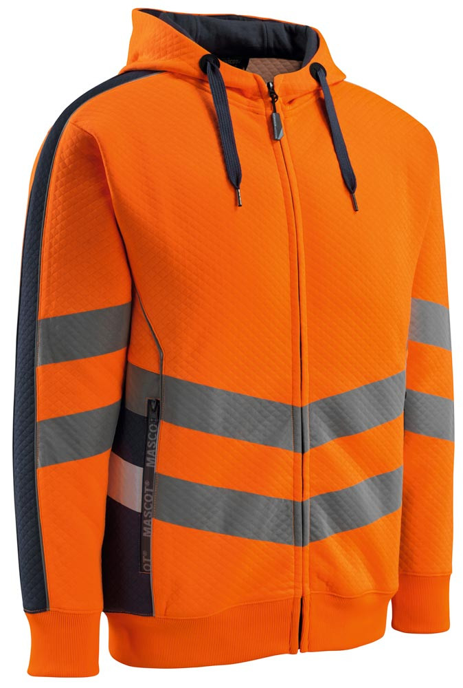 Warnschutz-Kapuzensweatshirt Corby, Farbe HiVis orange/schwarzblau, Gr. 2XL