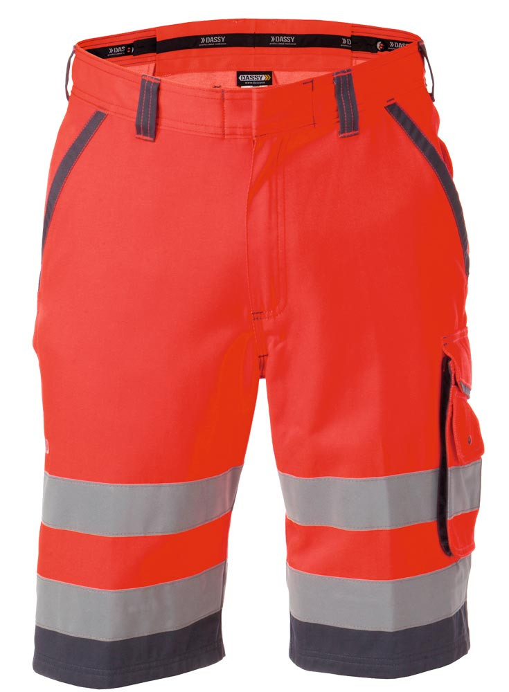 Warnschutz-Shorts Lucca, neonrot/zementgrau, Gr. 52