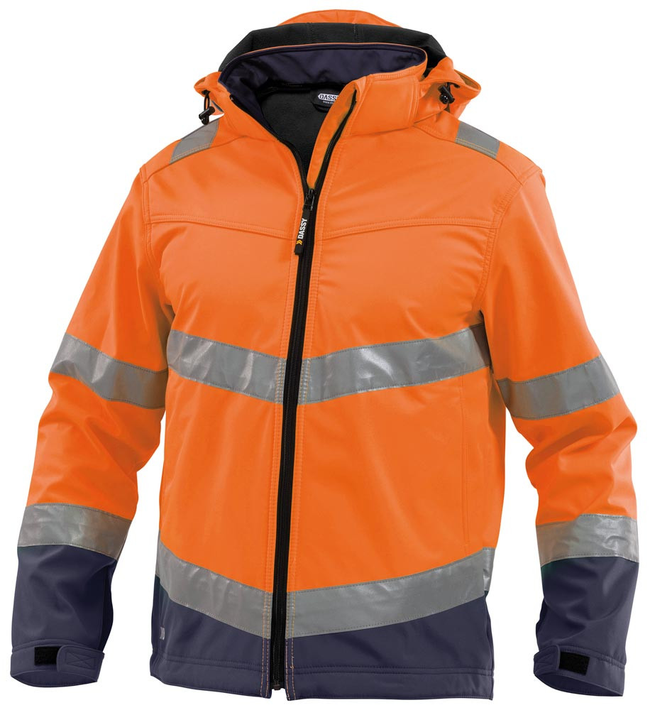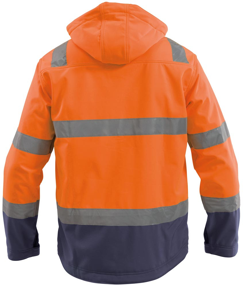 Nach EN ISO 20471:2013 - Klasse 3 ∙ Aus 100% Polyester, ca. 280 g/m2 ∙ Wasserdichter, winddichter und atmungsaktiver Stretch-Stoff ∙ Dreilagiger Softshell mit Fleece-Futterstoff ∙ Wasserdichtigkeit 5.000 mm - Winddurchlässigkeit = 5.000 g/m2/24h ∙ Ärmelweite über Klettband verstellbar ∙ Bund über elastischen Kordelzug verstellbar ∙ Langer Reißverschluss mit Kinnschutz ∙ Verlängerter Rücken ∙ 2 Schubtaschen mit Reißverschluss ∙ Innentasche und Handytasche ∙ Abnehmbare Kapuze mit elastischem Kordelzug ∙ Doppelte Kappnähte ∙ 50 mm breite Reflexstreifen ∙ OEKO-TEX® Standard 100