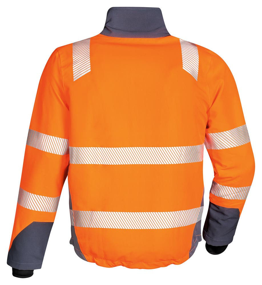 Nach EN ISO 20471, Klasse 3 ∙ Aus elastischem Material 90% Polyester/10% Elasthan, 215 g/m2 ∙ Robuste Ganzjahresjacke mit atmungsaktivem Netzfutter ∙ Atmungsaktiv und windabweisend ∙ Segmentierter Reflexstreifen inkl. Schulter-Reflexstreifen ∙ Verstellbarer Ärmelabschluss mit innenliegendem elastischem Armbündchen und verstellbarer Bund mit Kordelzug ∙ Mit 3 Reißverschluss-Außentaschen und 1 Reißverschluss-Innentasche ∙ Farbe leuchtorange / grau