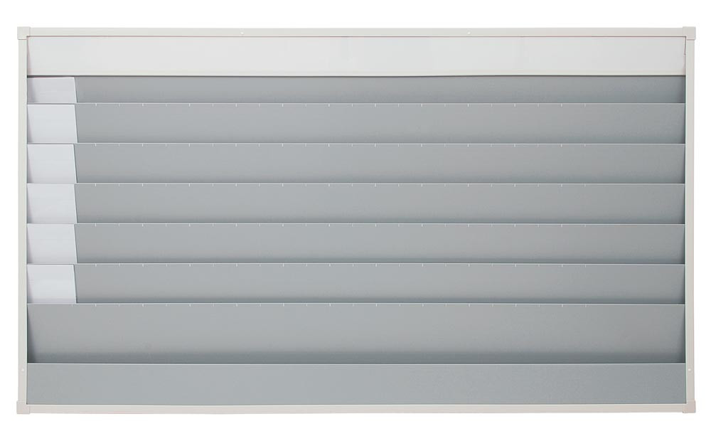 Werkstattplaner breit, Beschriftungsleiste, 15 Fächer, 1 Ablagefach, BxTxH 1580x76x1757 mm E871929