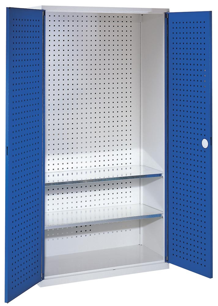 Werkzeugschrank, Türen mit Lochplatten, BxTxH 1000x500x1950 mm, 2 Fachböden, RAL 7035/5010 E863598