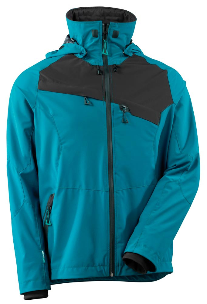 Zertifiziert nach OEKO-TEX® Standard 100 und EN 343 3/3 ∙ Aus 87% Polyamid/13% Elasthan, ca. 200 g/m2 ∙ 4-Wege-Stretchstoff in alle Richtungen elastisch für optimale Bewegungsfreiheit und auf niedriges Volumen komprimierbar - kombiniert geringes Gewicht mit hoher Strapazierfähigkeit ∙ Atmungsaktiv, wind- und wasserdicht mit verklebten Nähten ∙ Ärmel sind Fasson geschnitten, Vordertaschen mit Reißverschluss ∙ Gummizug in der Unterkante, regulierbar ∙ Rippenbündchen (verdeckt unter der Wetterschutzleiste) an den Handgelenken. Daumenlöcher am Handgelenk ∙ Reflexstreifen für verbesserte Sichtbarkeit ∙ Für Industriewäsche-Kategorie C2 geeignet