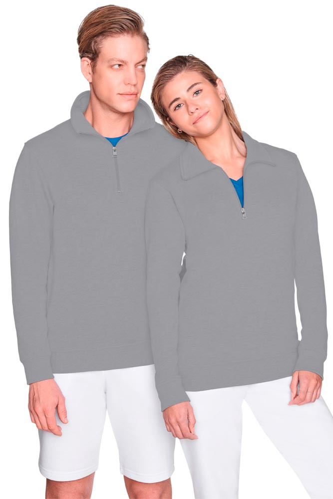 Wirkware aus 70% gekämmter Baumwolle/30% Polyester (grau-meliert: 60% Polyester/40% Baumwolle), ca. 300 g/m2 ∙ Zip-Sweat mit LYCRA®-Anteil verstärkten Bündchen ∙ Doppelnahtverarbeitung ∙ YKK®-Reißverschluss ∙ Gewebtes Flaglabel an der linken Seitennaht ∙ Waschbar bis 60 ºC ∙ Einlaufvorbehandelt