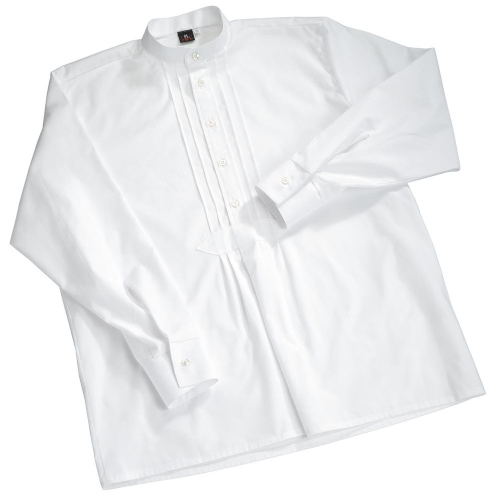 Aus 100% Baumwolle, sanforisiert ∙ Langärmeliges Stehkragenhemd mit Faltenbrust in Schlupfform ∙ Farbe weiß