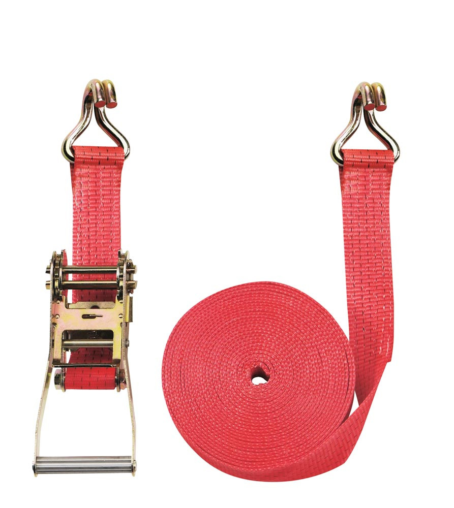 Zweiteiliger Zurrgurt, mit Spitzhaken, 5000 daN zul. Zugkraft in der Umreifung, Gurtbreite 50 mm, Länge 6 m, Farbe rot, 5 Streifen, VE 2 Stück