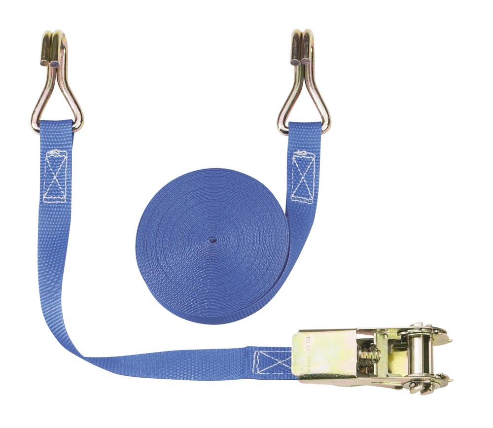 Zweiteiliger Zurrgurt, mit Spitzhaken, 800 daN zul. Zugkraft in der Umreifung, Gurtbreite 25 mm, Länge 8 m, Farbe blau, VE 4 Stück